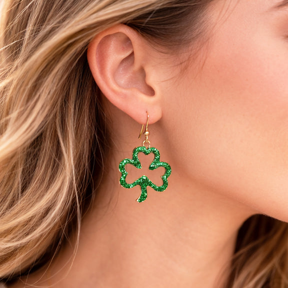 Add a little sparkle of luck to your look with our Green Glitter Luck O’ The Irish Clover Earrings.