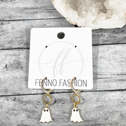 Available in silver or gold, the Halloween Tiny Ghost Earrings measure just 1 1/3" including the lever-back ear hooks to add that ghostly glow suiting any vibe!